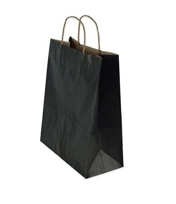 Burgu Saplı Siyah Kraft Çanta 12x31x41 Cm 25 Adet