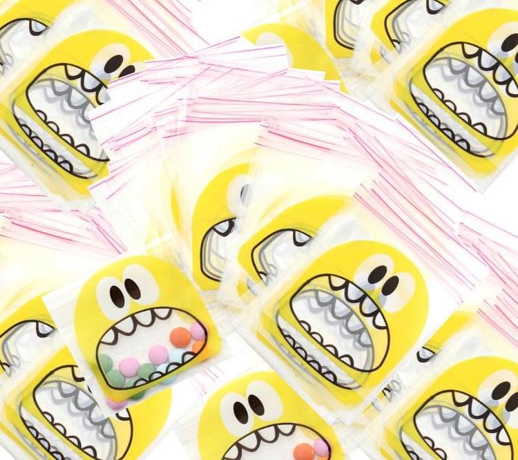 Canavar Baskılı Yapışkan Bantlı OPP Jelatin Torba Sarı