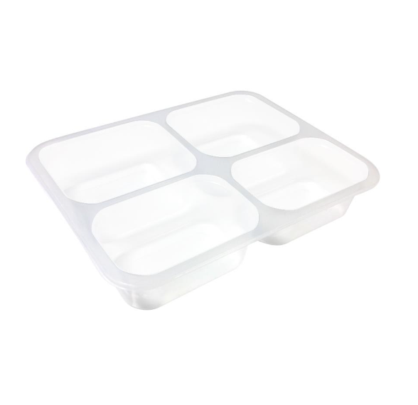 - 100 adet dört bölmeli şeffaf kap bulunmaktadır.