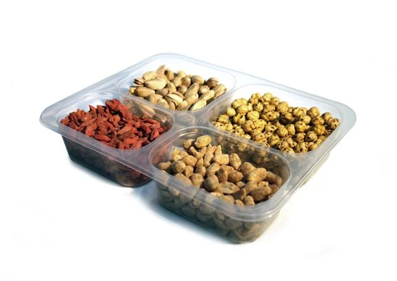 Dört Bölmeli Üst Film Kapama Şeffaf Gıda Kabı