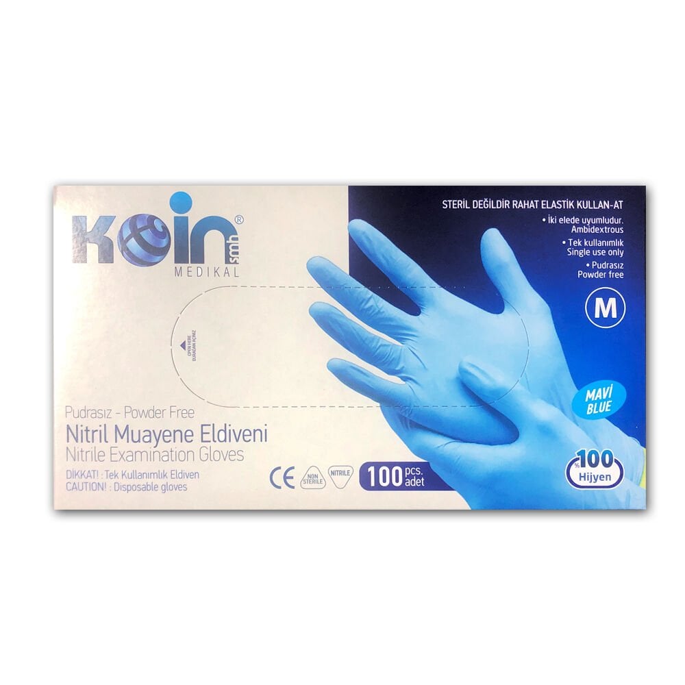 Koinsmh Nitril Mavi Pudrasız Muayene Eldiveni Orta Boy 100 Adet