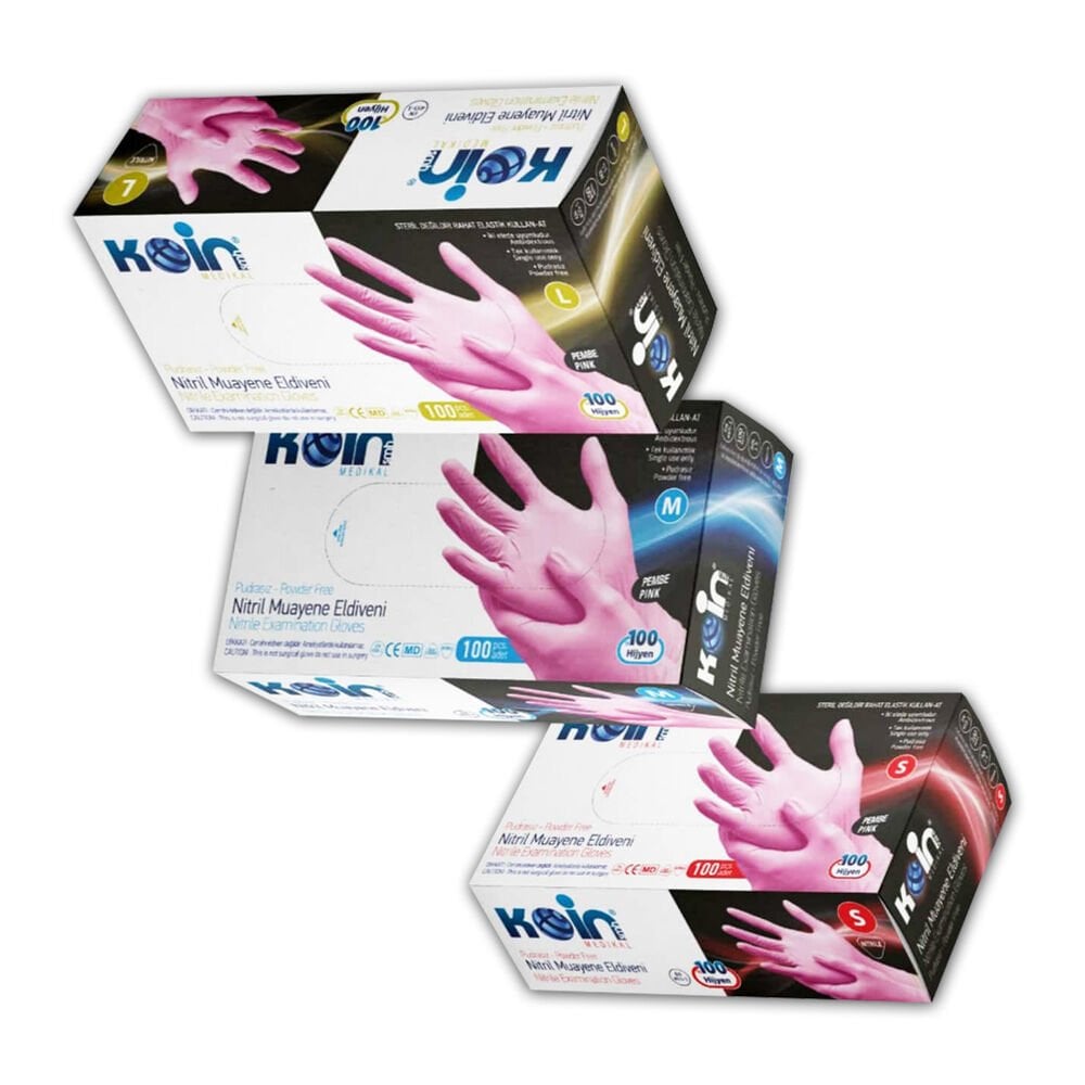 Koinsmh Nitril Pembe Pudrasız Muayene Eldiveni Küçük Boy 100 Adet
